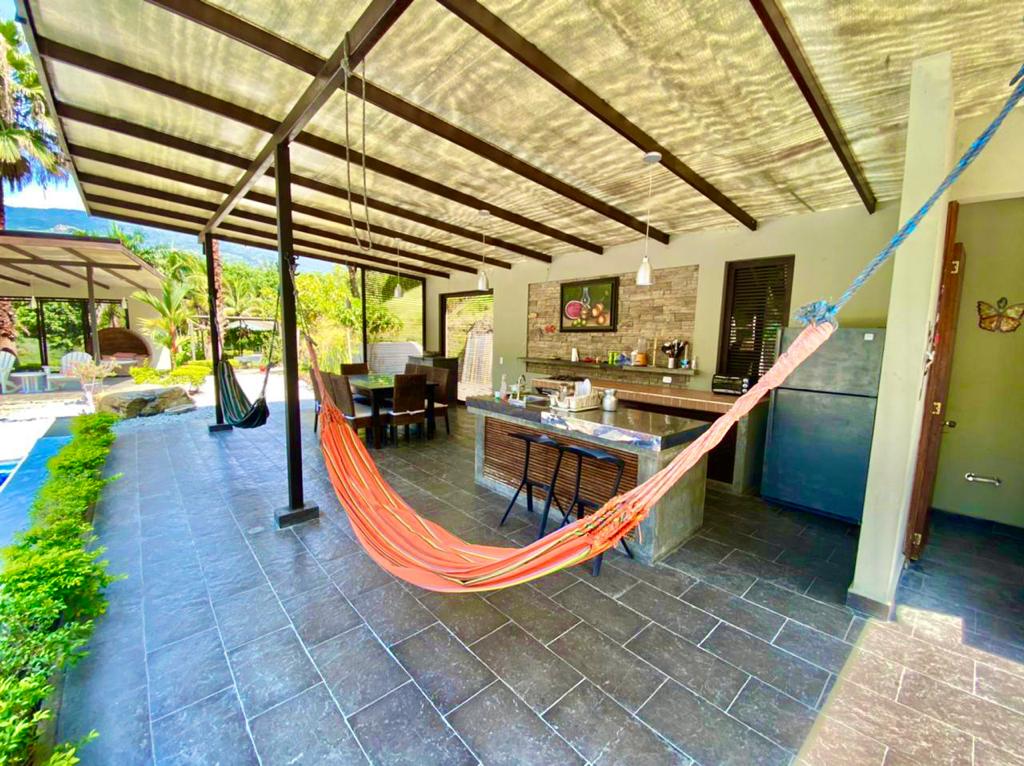Maravillosa finca vacacional ubicada a solo 3 kilometros del parque principal de villeta. 👌🏡 con capacidad para 10 personas, 3 habitaciones, 3 baños, Sala comedor, Cocina completamente dotada, Amplias zonas verdes, Terrazas, Lago, Cancha de minitejo, Parrilla, Parqueadero, Piscina y jacuzzi.