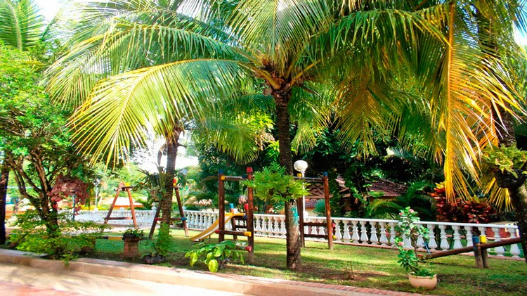 Amplias zonas ajardinadas además con árboles frutales y también flores exóticas