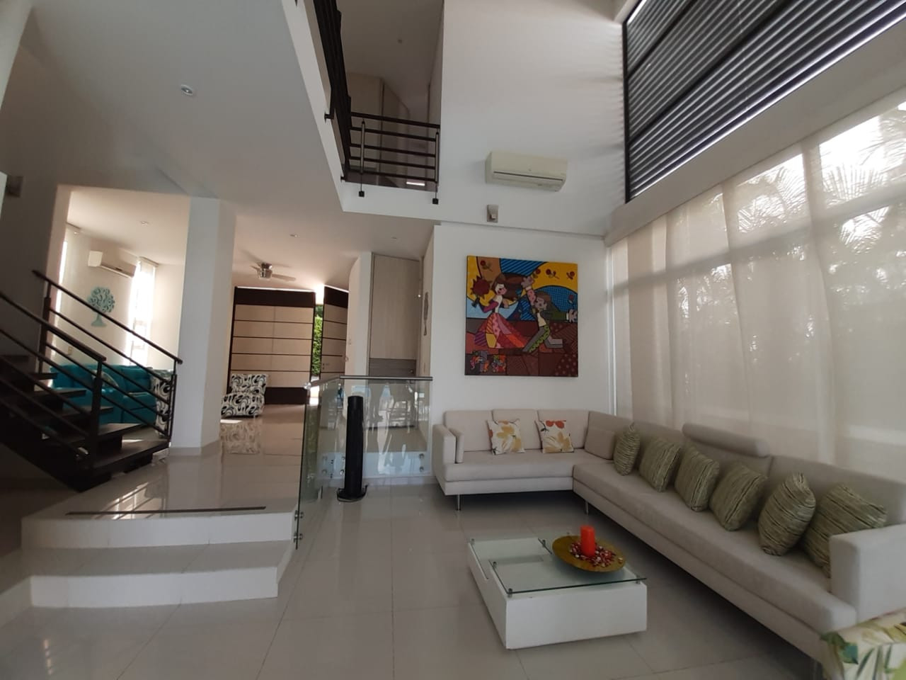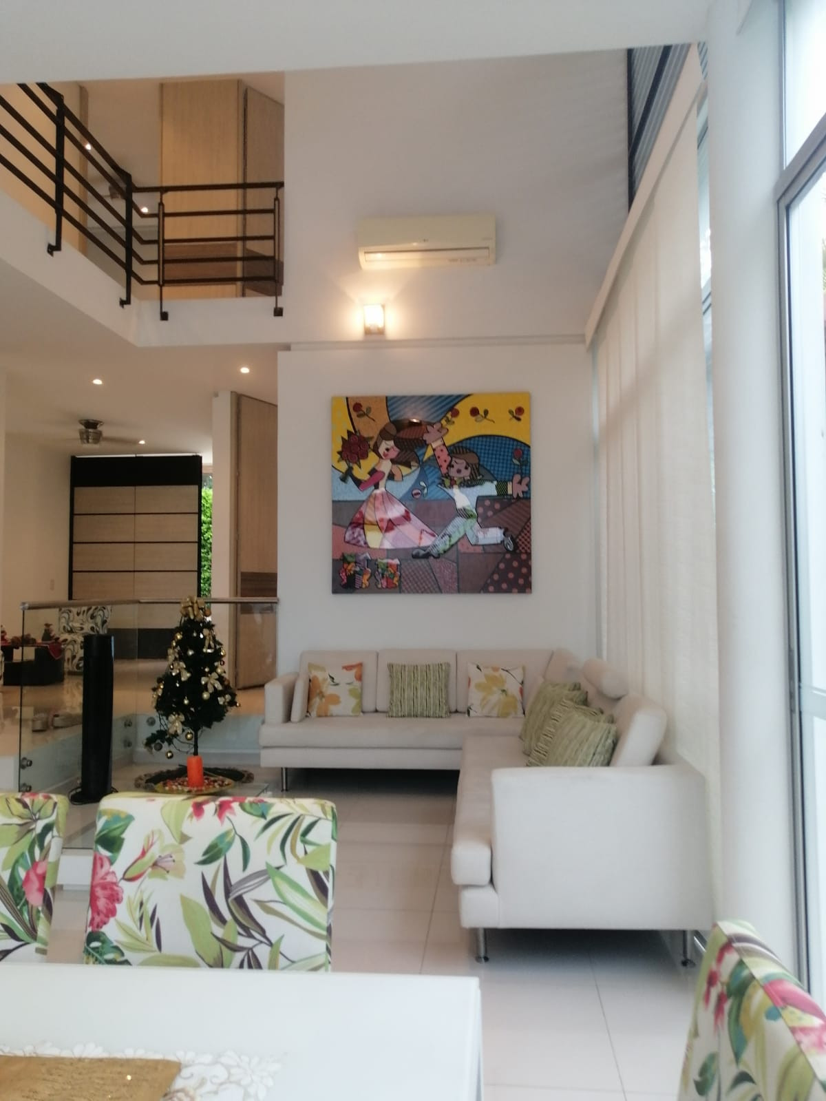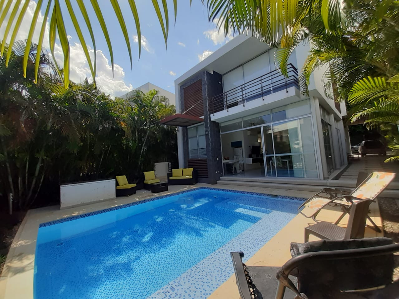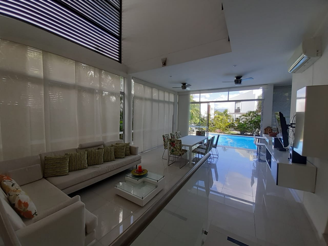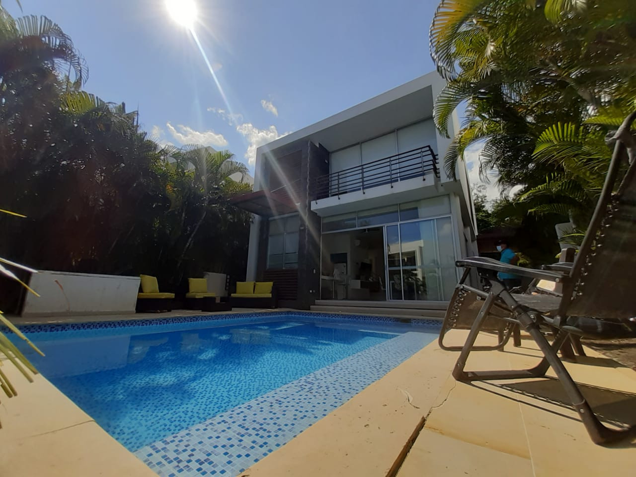 Sala con tv y aire acondicionado, comedor, cocina bien equipada, piscina privada con zona humeda, jacuzzi, la casa cuenta con internet y televisión con directtv