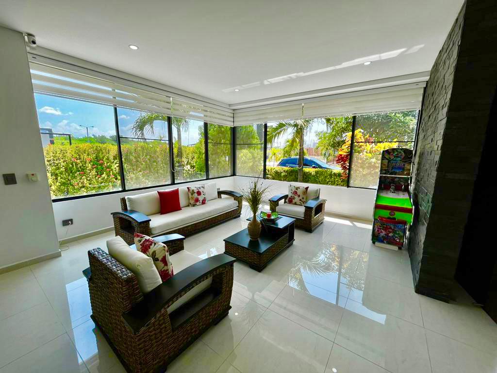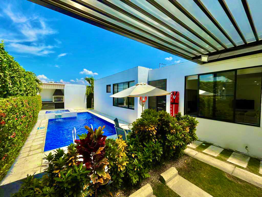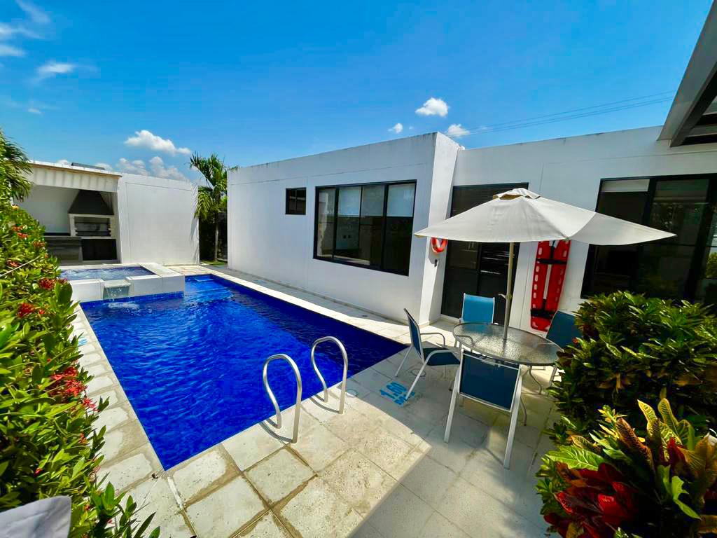 Dispone de 3 habitaciones con aire acondicionado y baño privado, Sala comedor ,Cocina equipada, Piscina, Jacuzzi, Zona bbq, Parqueadero para 3 vehículos