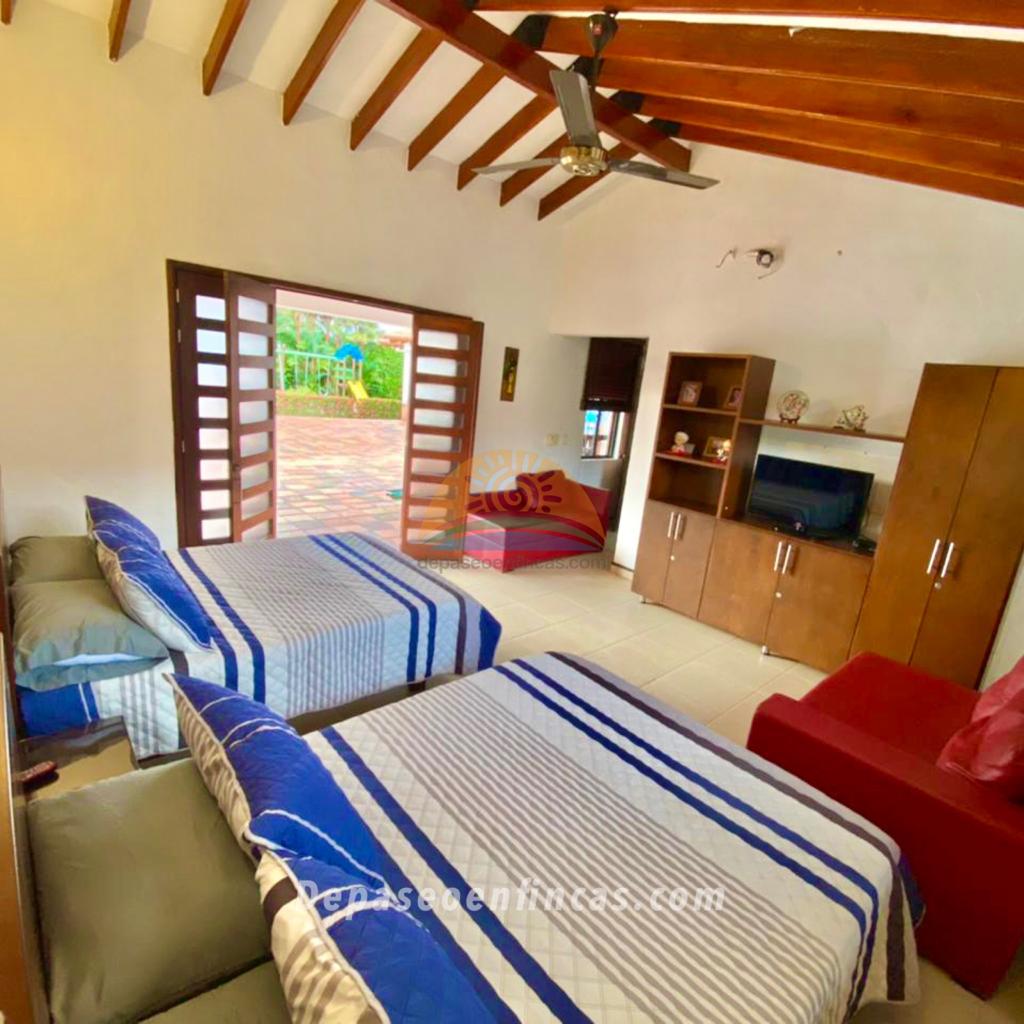 Finca para alquiler en Villavicencio, cuenta con 7 habitaciones con baño privado, Piscina, Jacuzzi, Turco, Kiosco, Ping pong, Rana, Cancha de tejo, BBQ y Wifi. Esta Ubicada a tan solo 7 minutos del centro de Villavicencio.